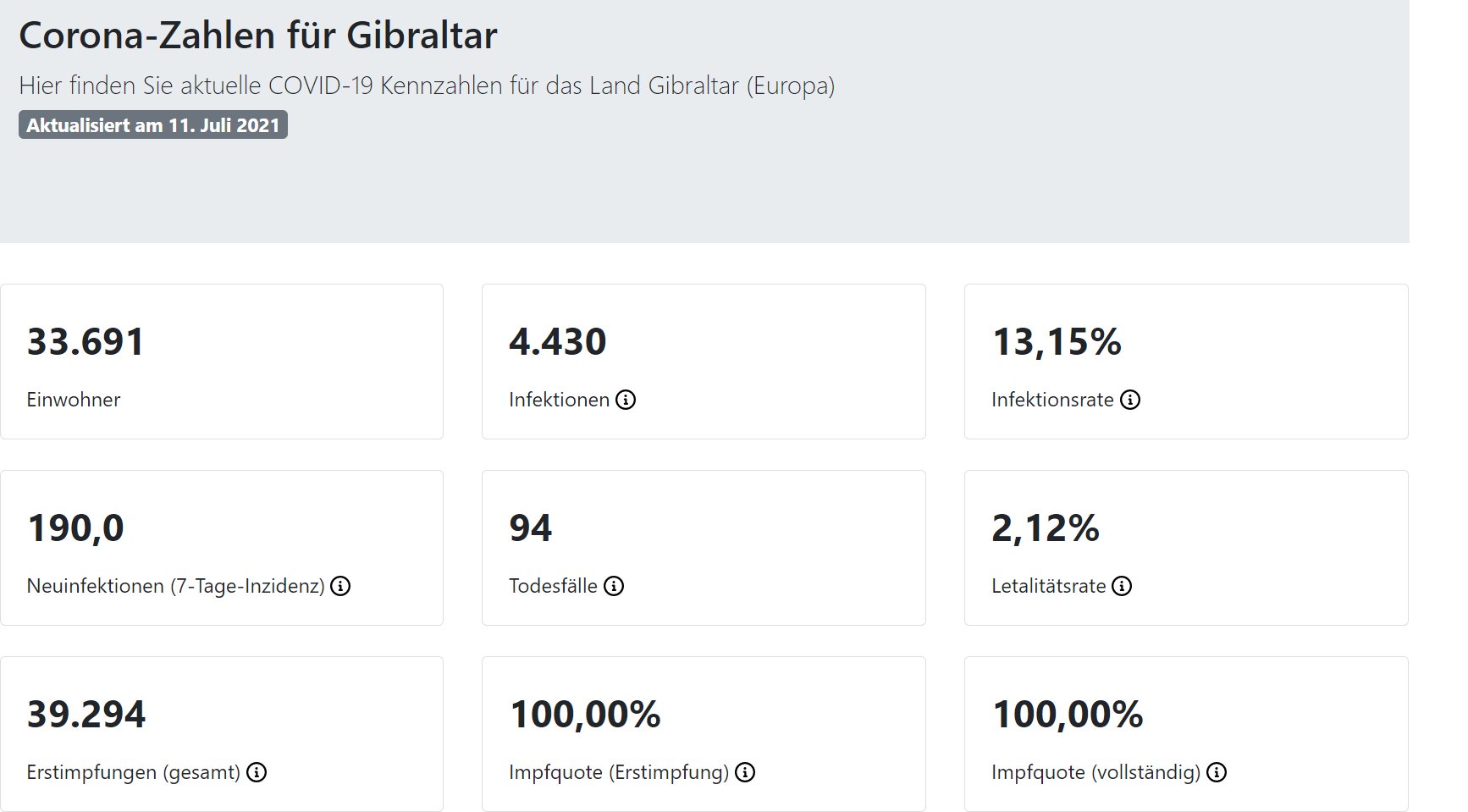 Das kleine Gibraltar hat eine Top-Impfquote. 90 Prozent der Bevölkerung hat bereits den kompletten Impfschutz. Das was wir schon wissen.